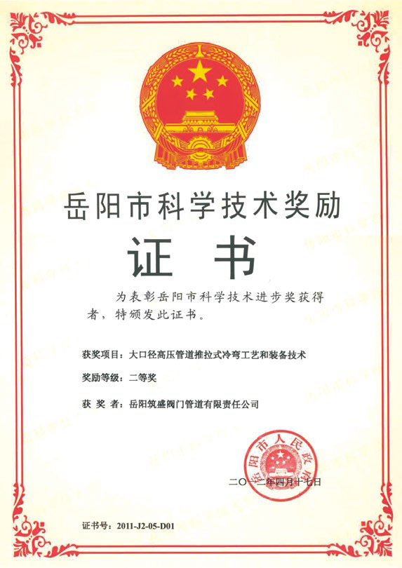 岳陽市科技獎(jiǎng)證書