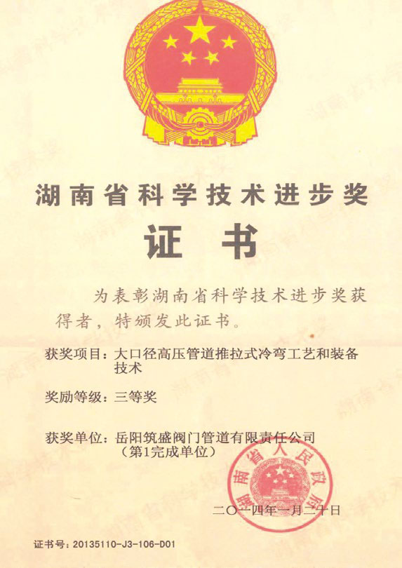湖南省科技進步獎證書