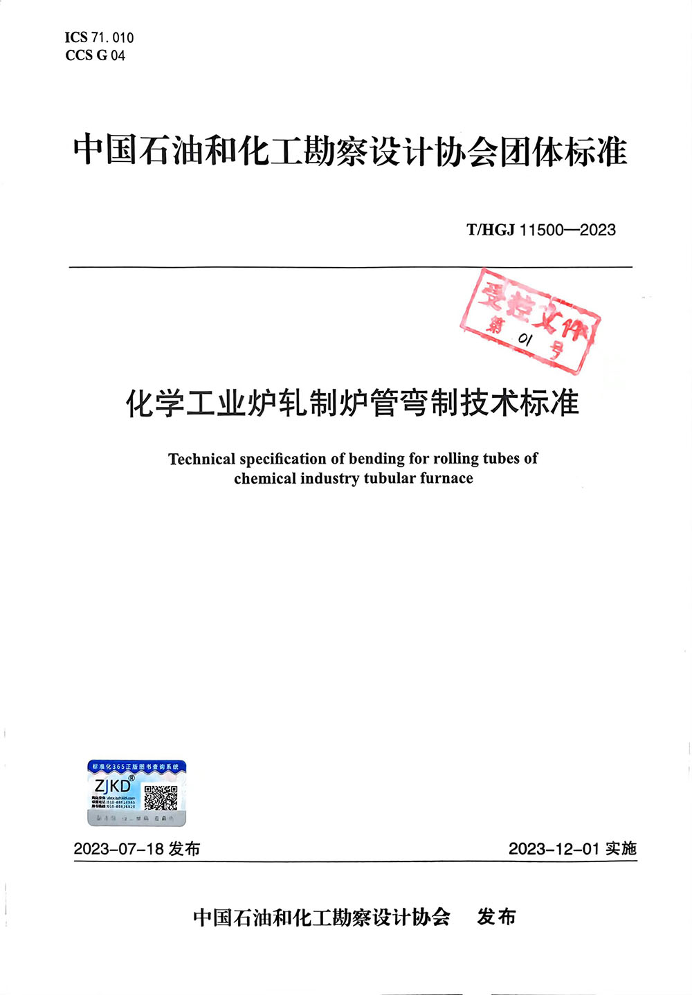 岳筑宣2023年12月6日訊:由我公司主編的石油和化工勘察設(shè)計(jì)團(tuán)體標(biāo)準(zhǔn)已正式發(fā)布,標(biāo)準(zhǔn)號(hào)T/HGJ 11500-2023;標(biāo)準(zhǔn)名稱《化學(xué)工業(yè)爐軋制爐管彎制技術(shù)標(biāo)準(zhǔn)》